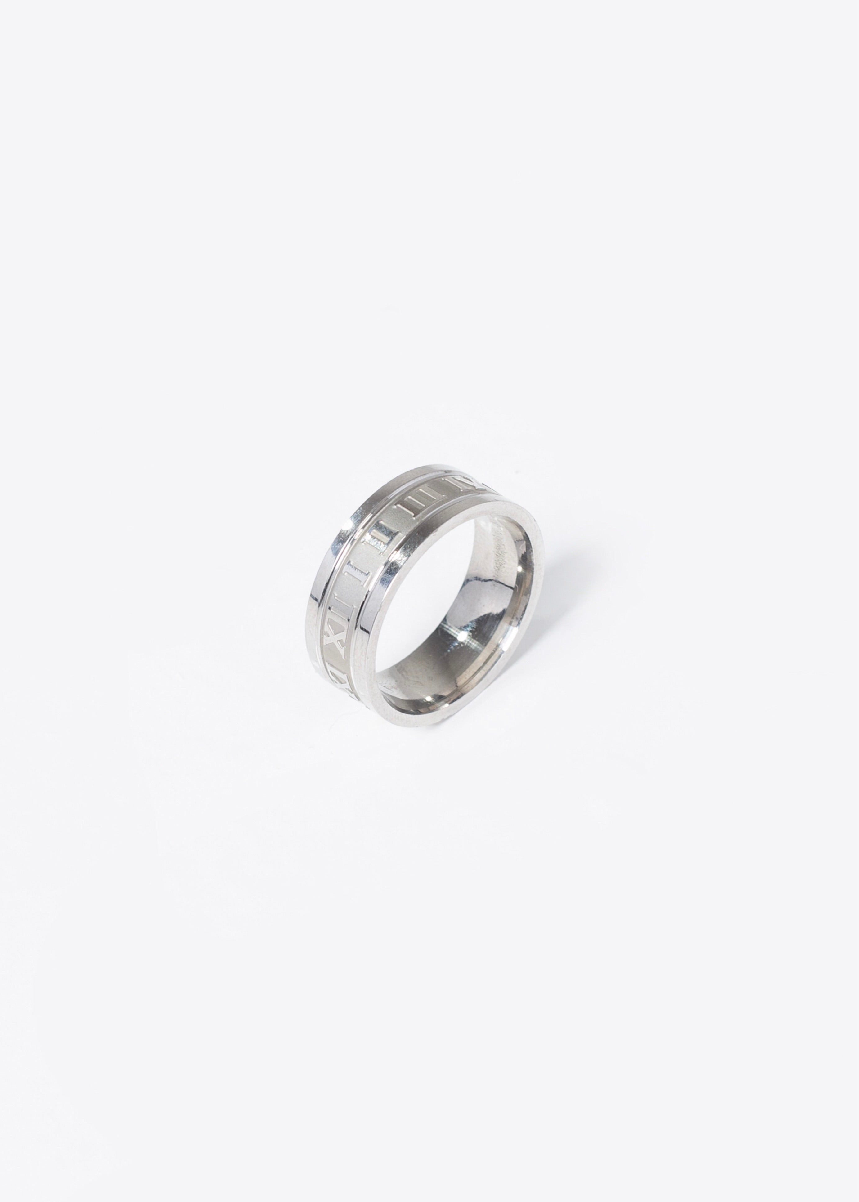 Anillo números romanos y punto luz - Acero quirúrgico plateado