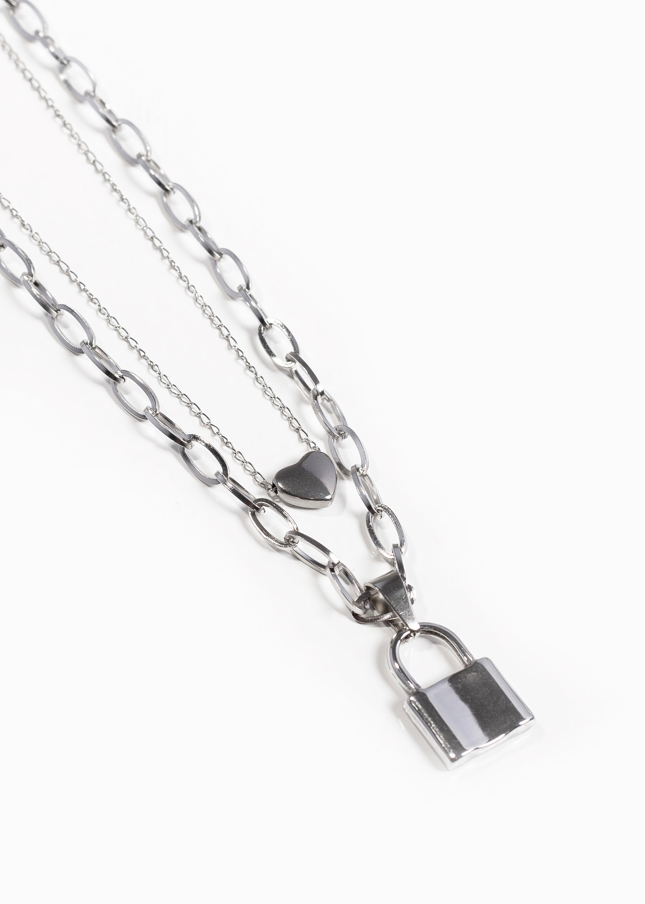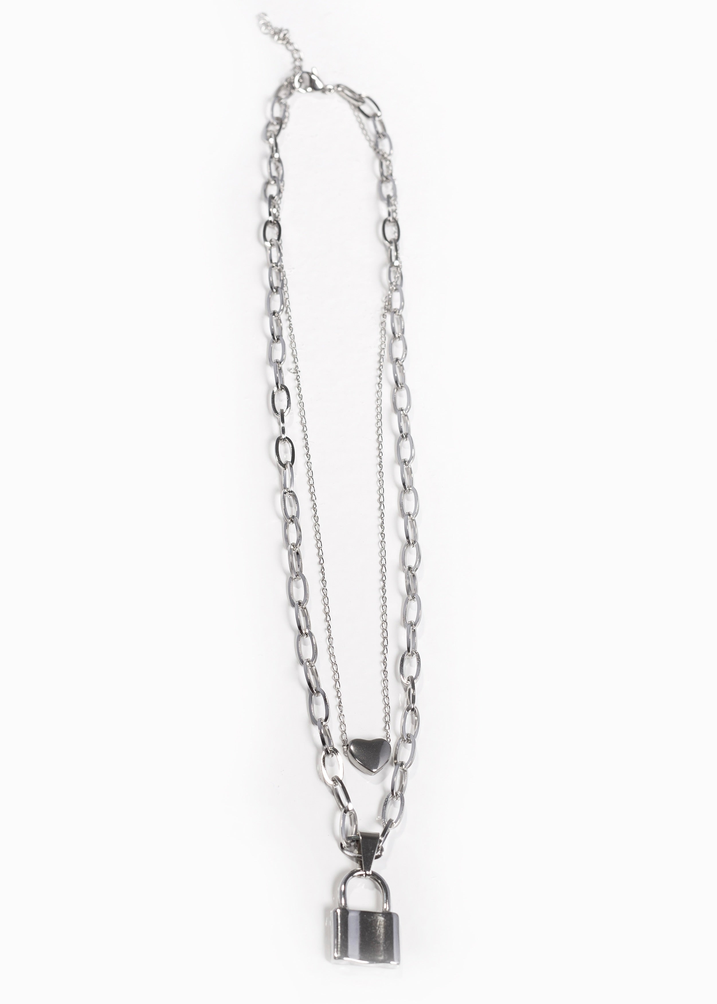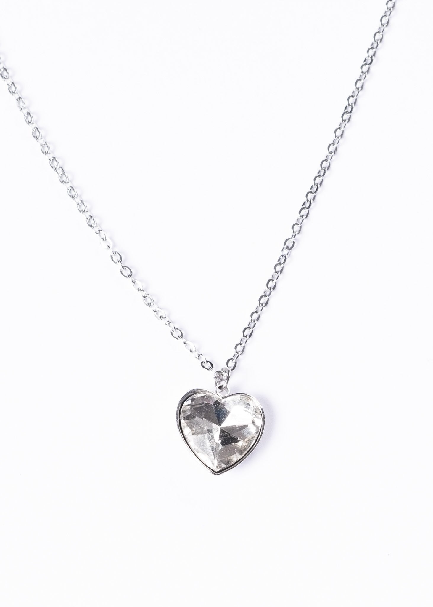 Collar forcet 50cm con dije corazón cristal blanco - Acero quirúrgico