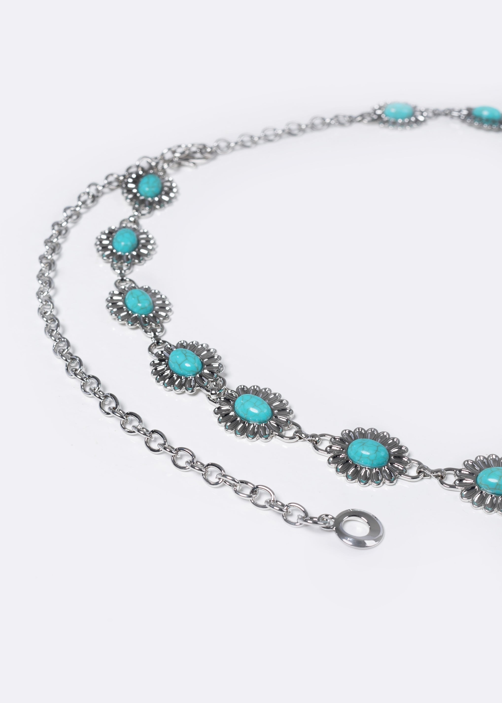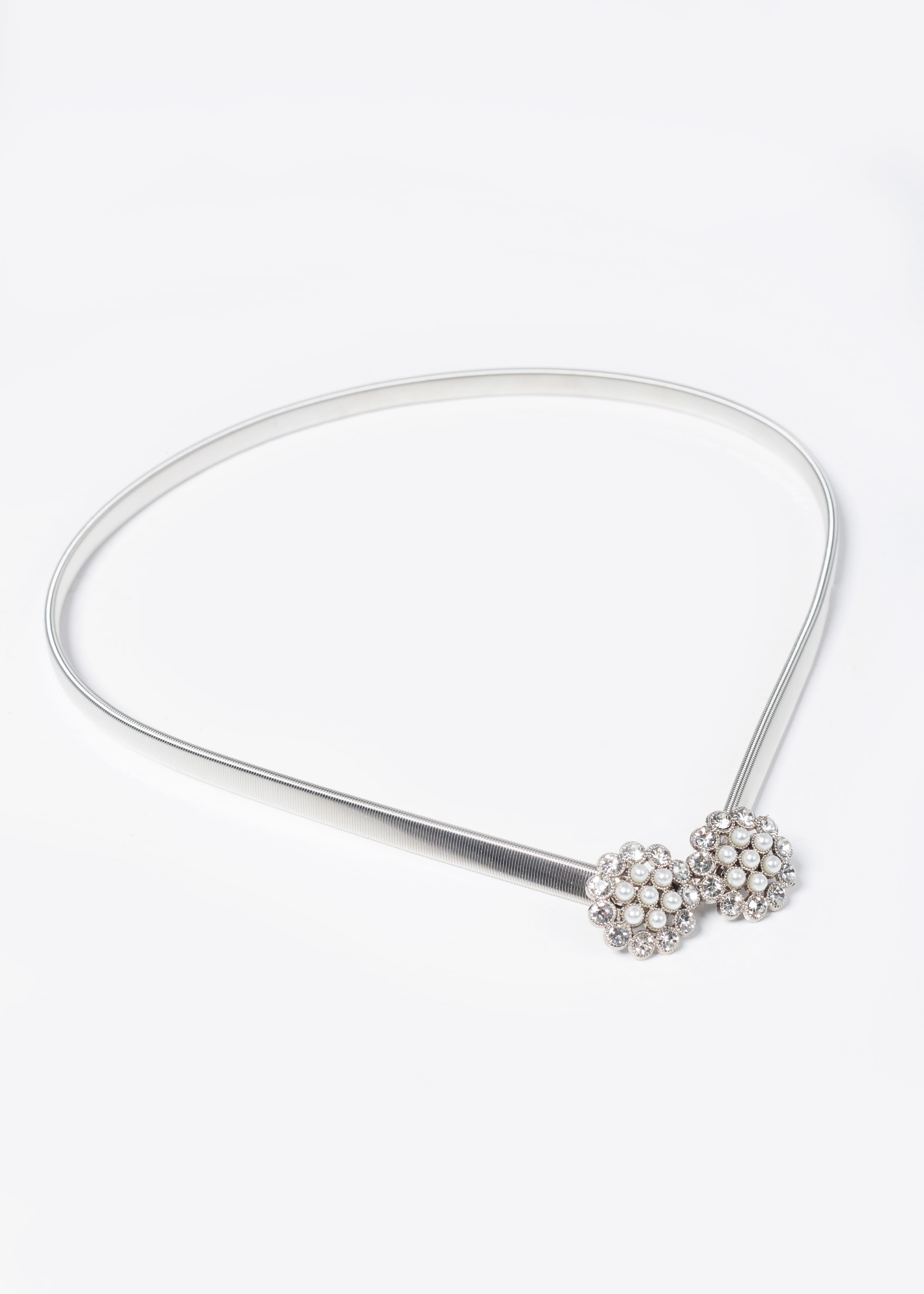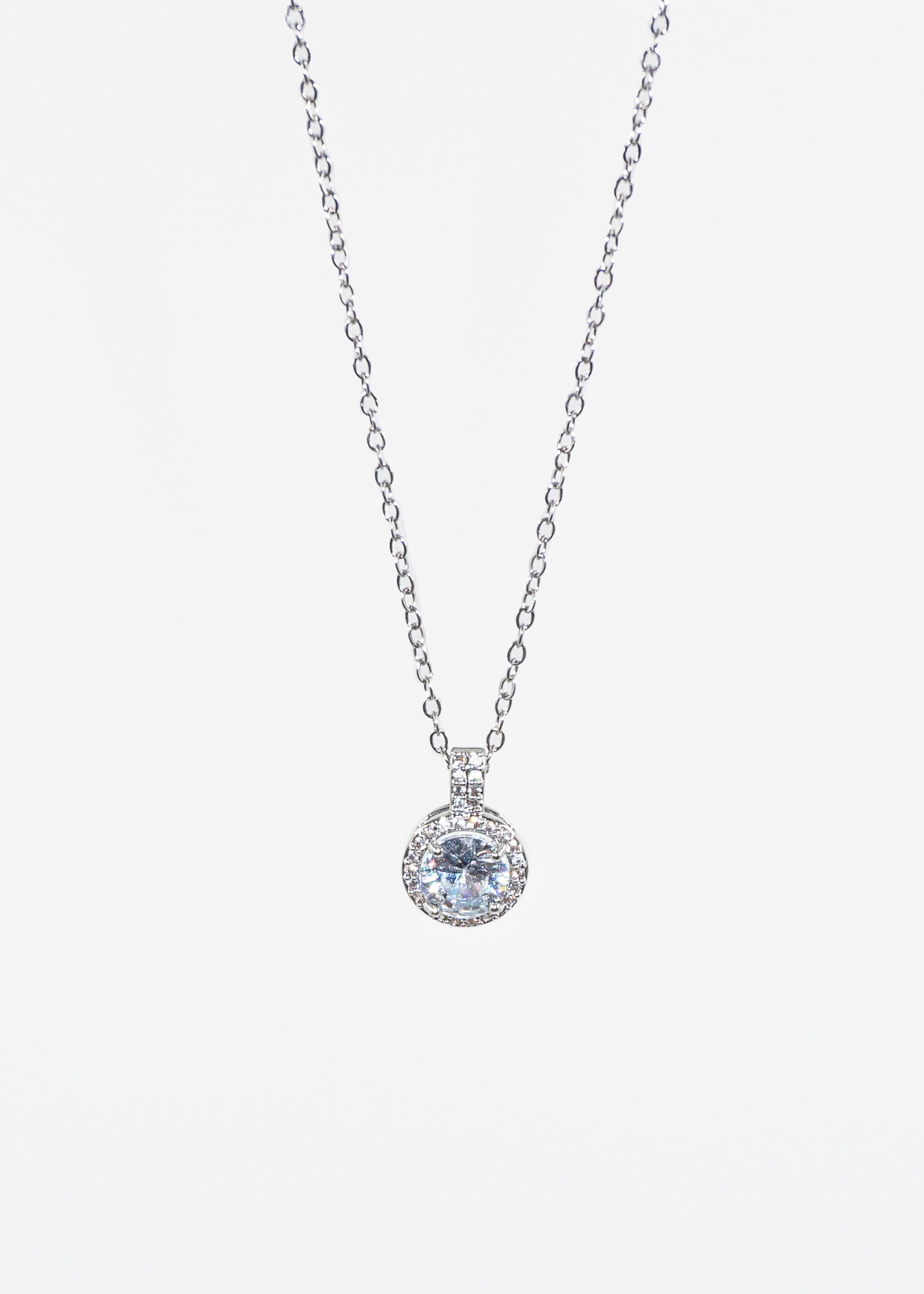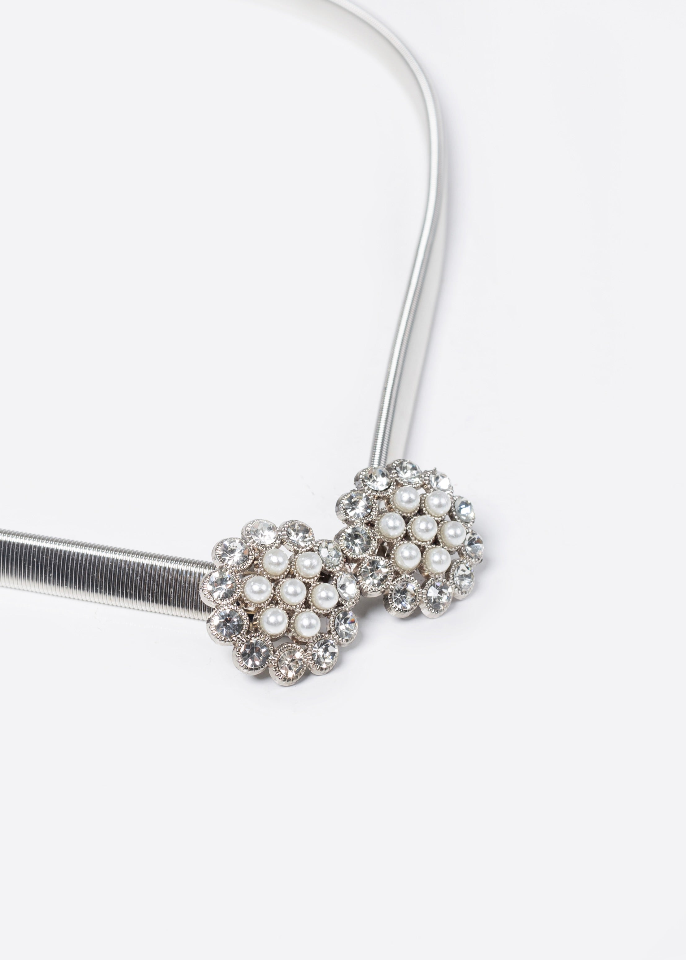 Collar flor zirconias - Acero quirúrgico enchapado en plata