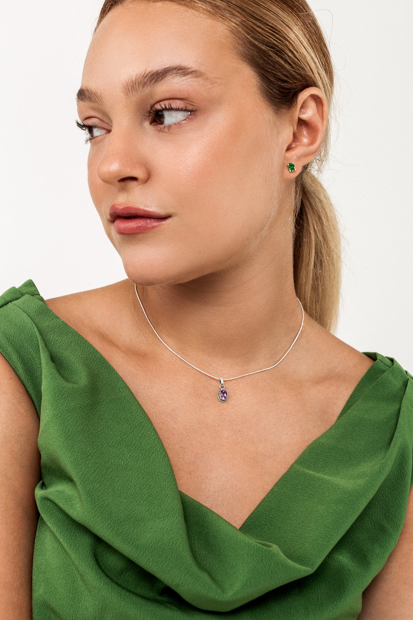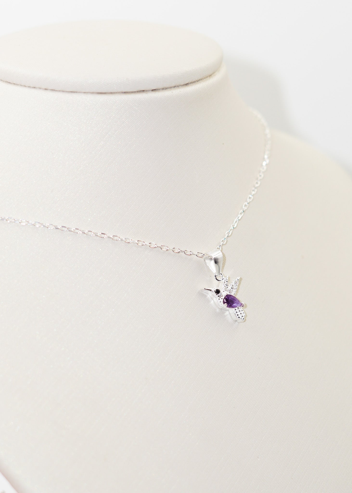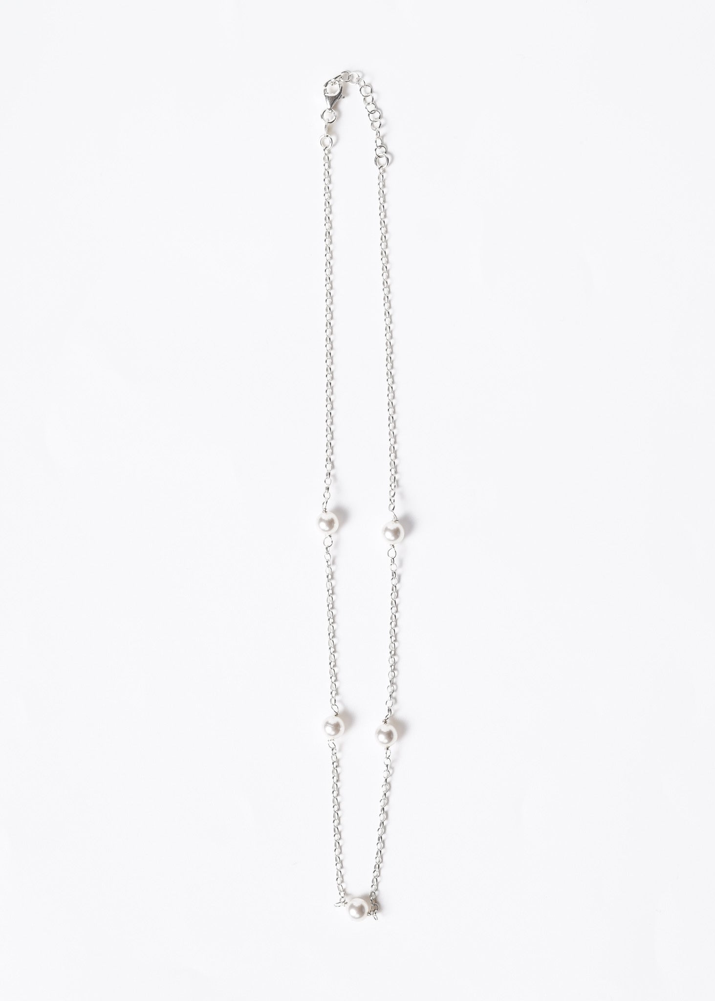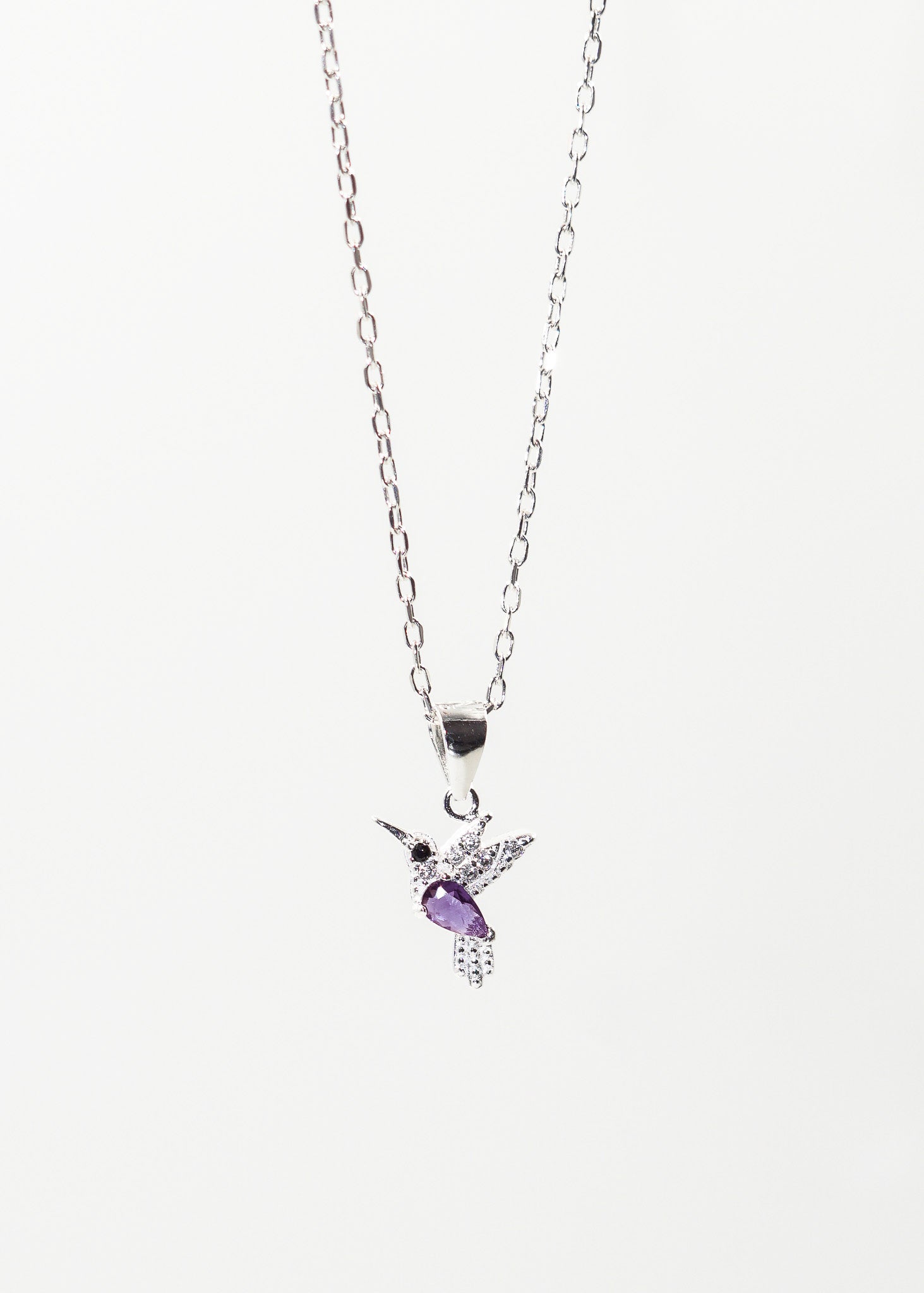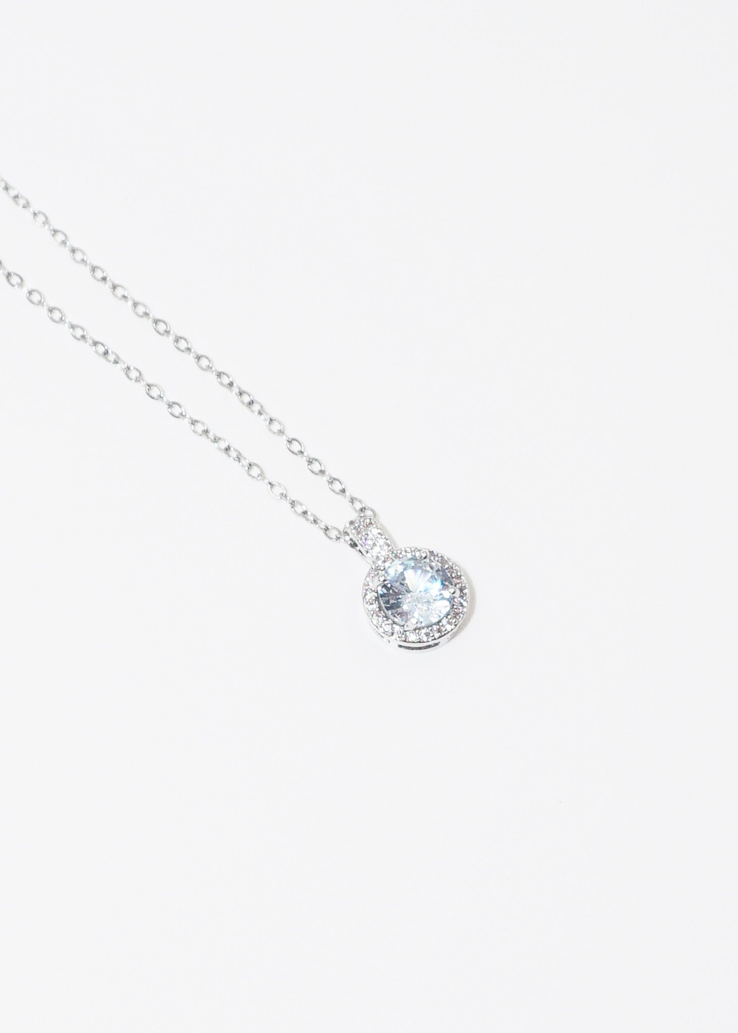 Collar flor zirconias - Acero quirúrgico enchapado en plata