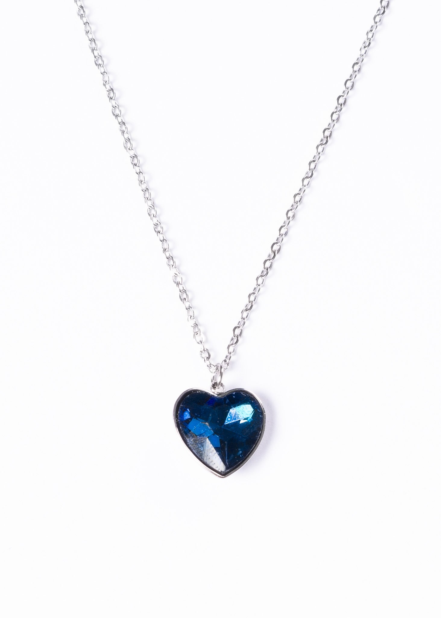 Collar forcet 50cm con dije corazón cristal azul - Acero quirúrgico