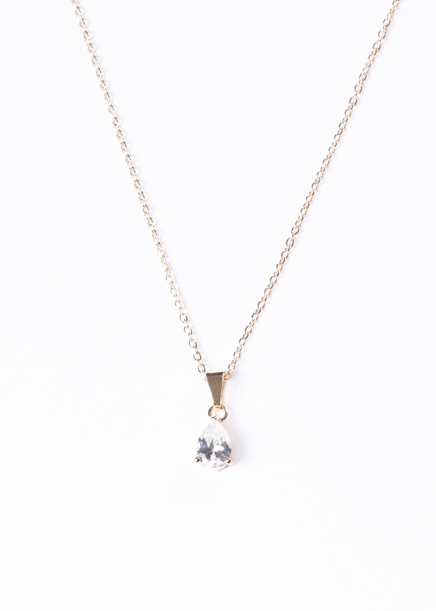 Collar con dije gota zirconia - Acero quirúrgico enchapado en oro