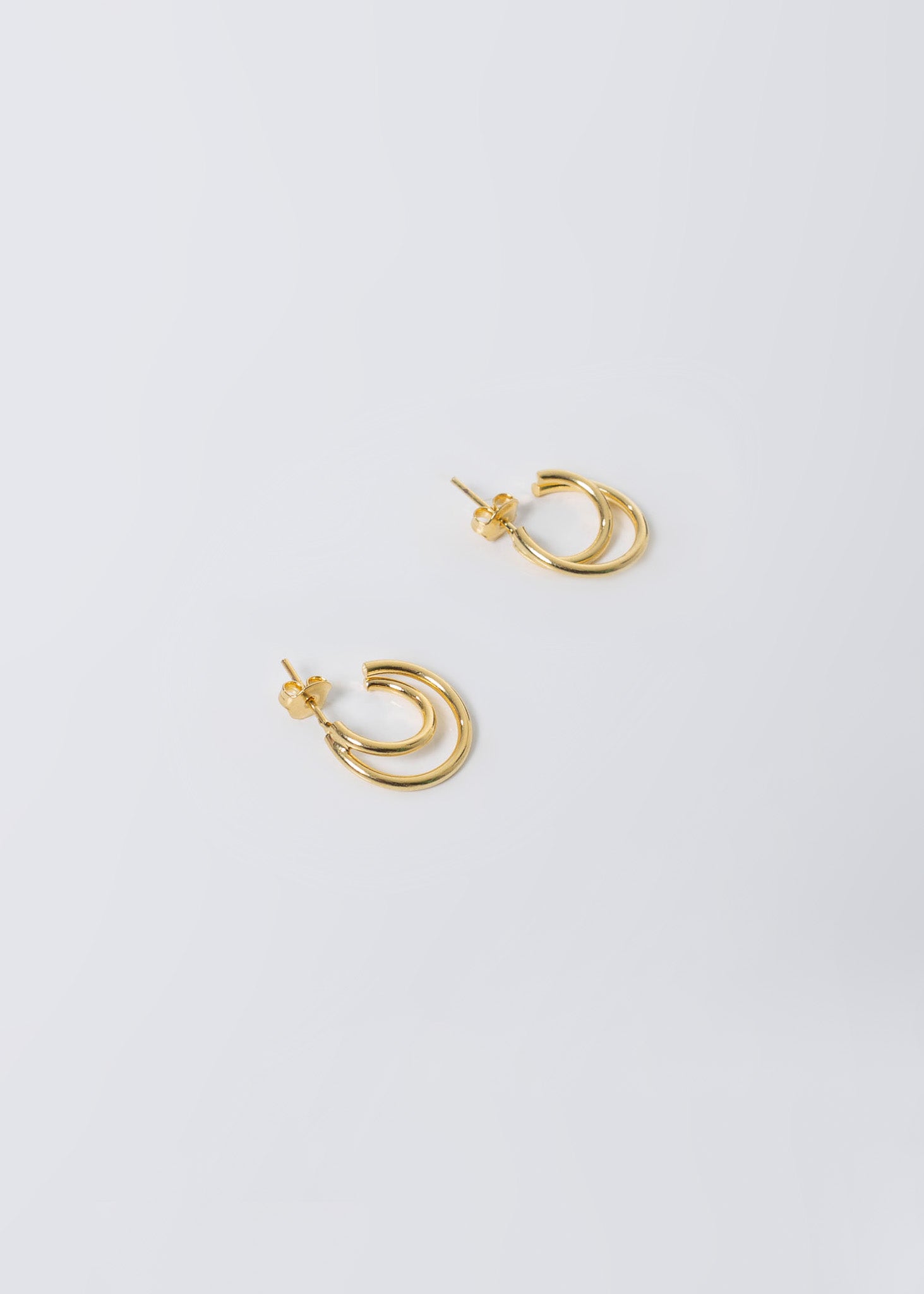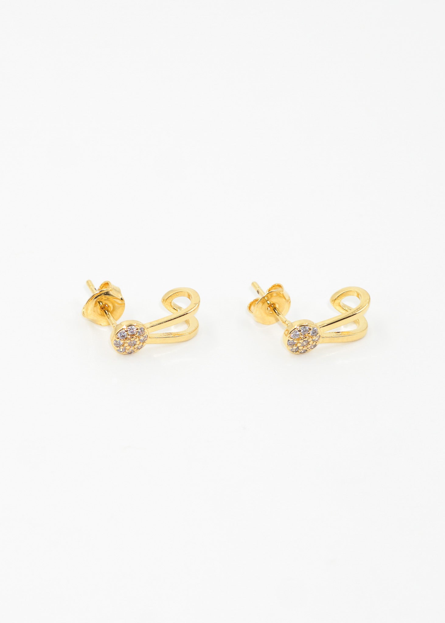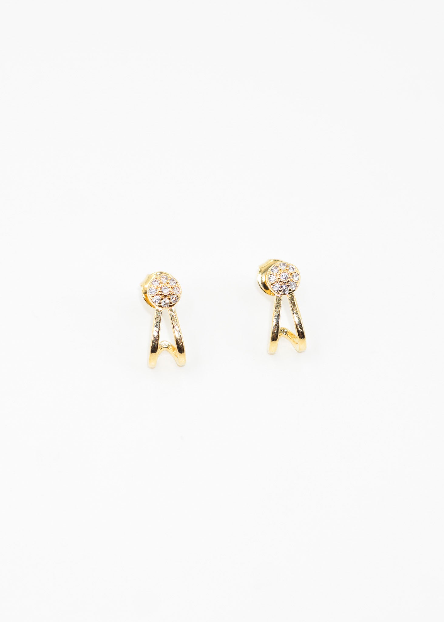 Caravanas doble línea enganche y zirconias baño en oro 18k