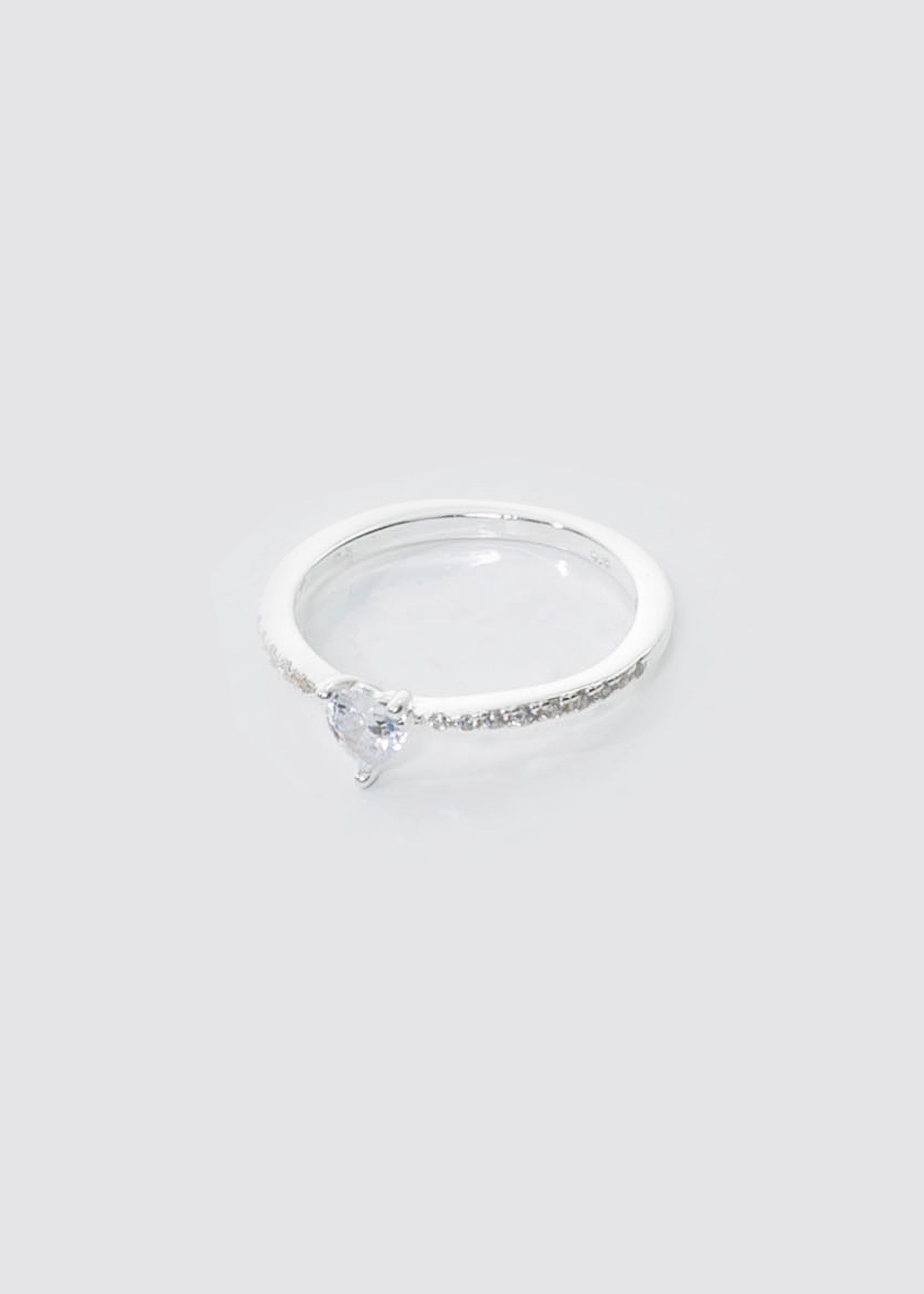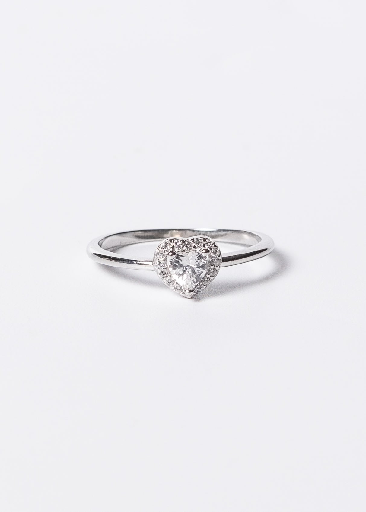 Anillo solitario zirconia corazón plata 925 & doublé de oro