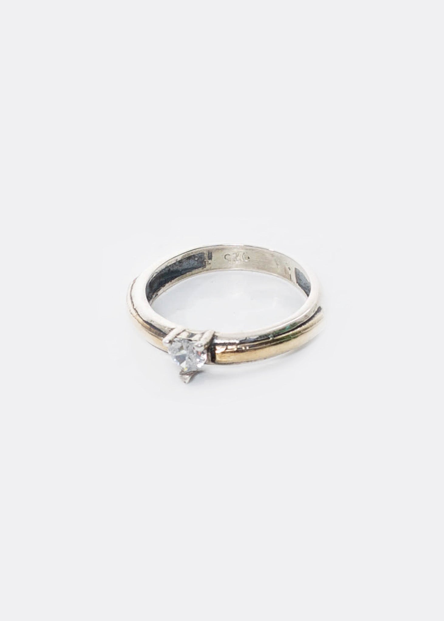 Anillo solitario doble con zirconia plata 925 & doublé de oro
