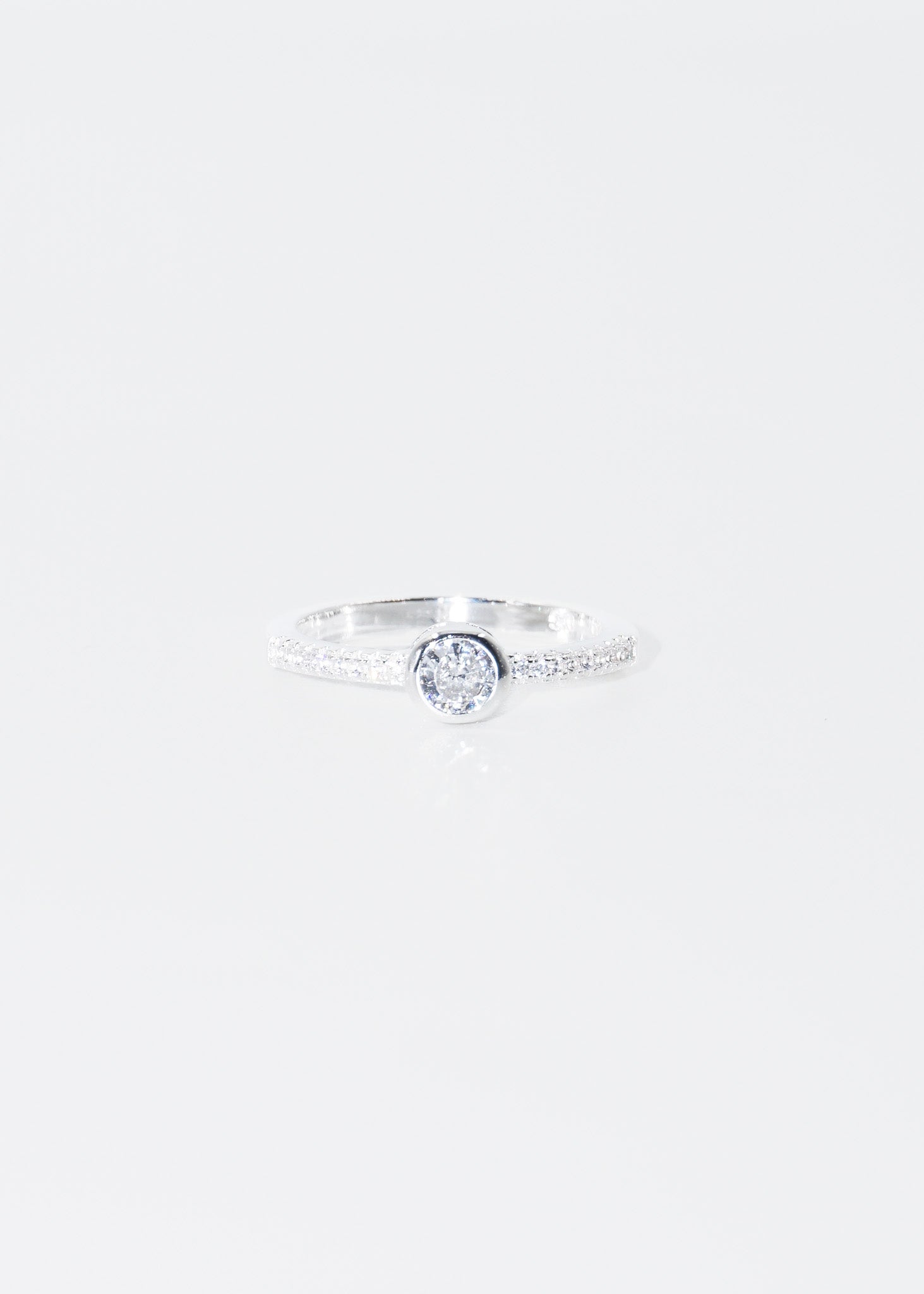 Anillo piedra brillo 4mm - Acero quirúrgico plateado