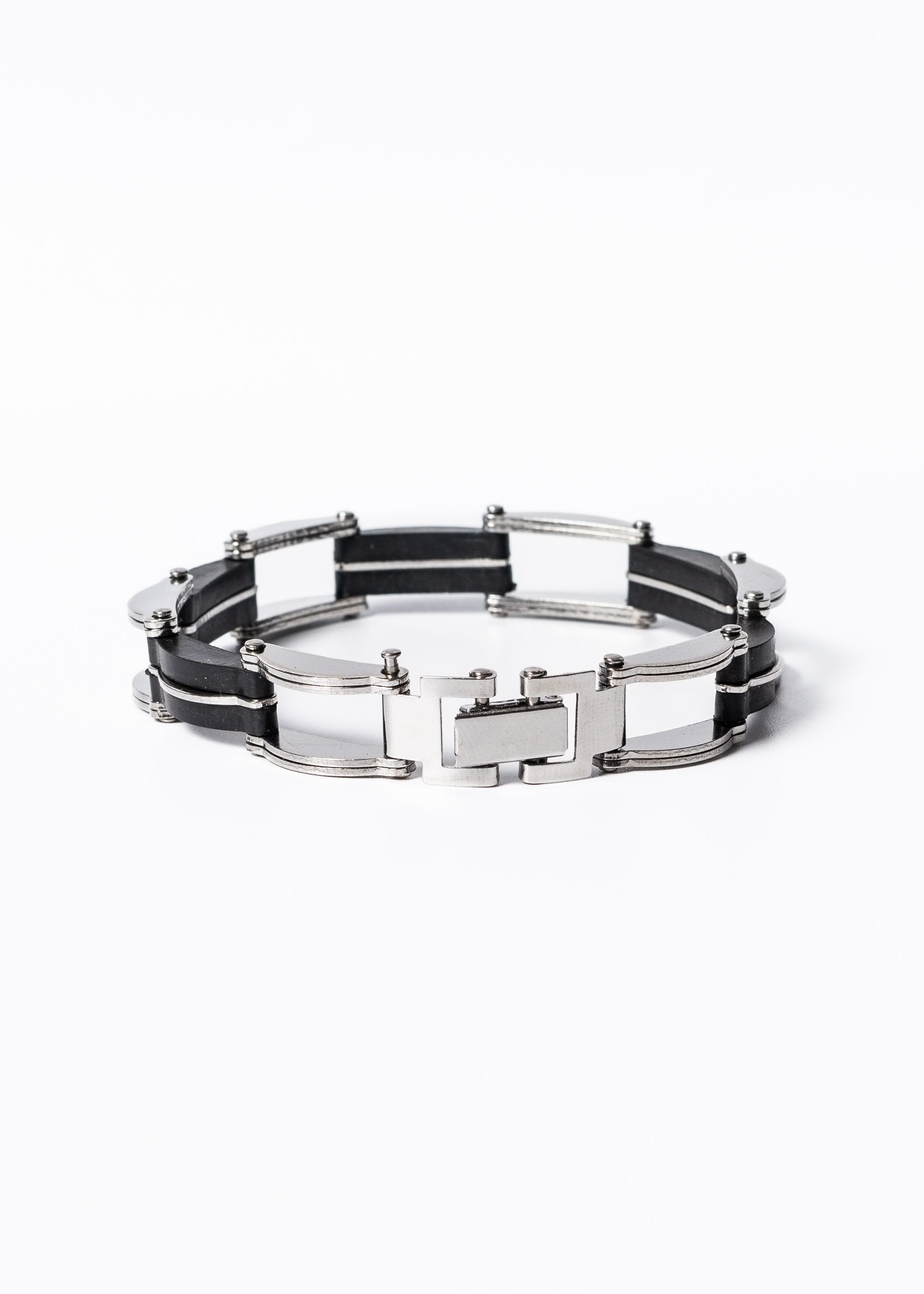 Pulsera brazalete combinado acrílico negro acero quirúrgico