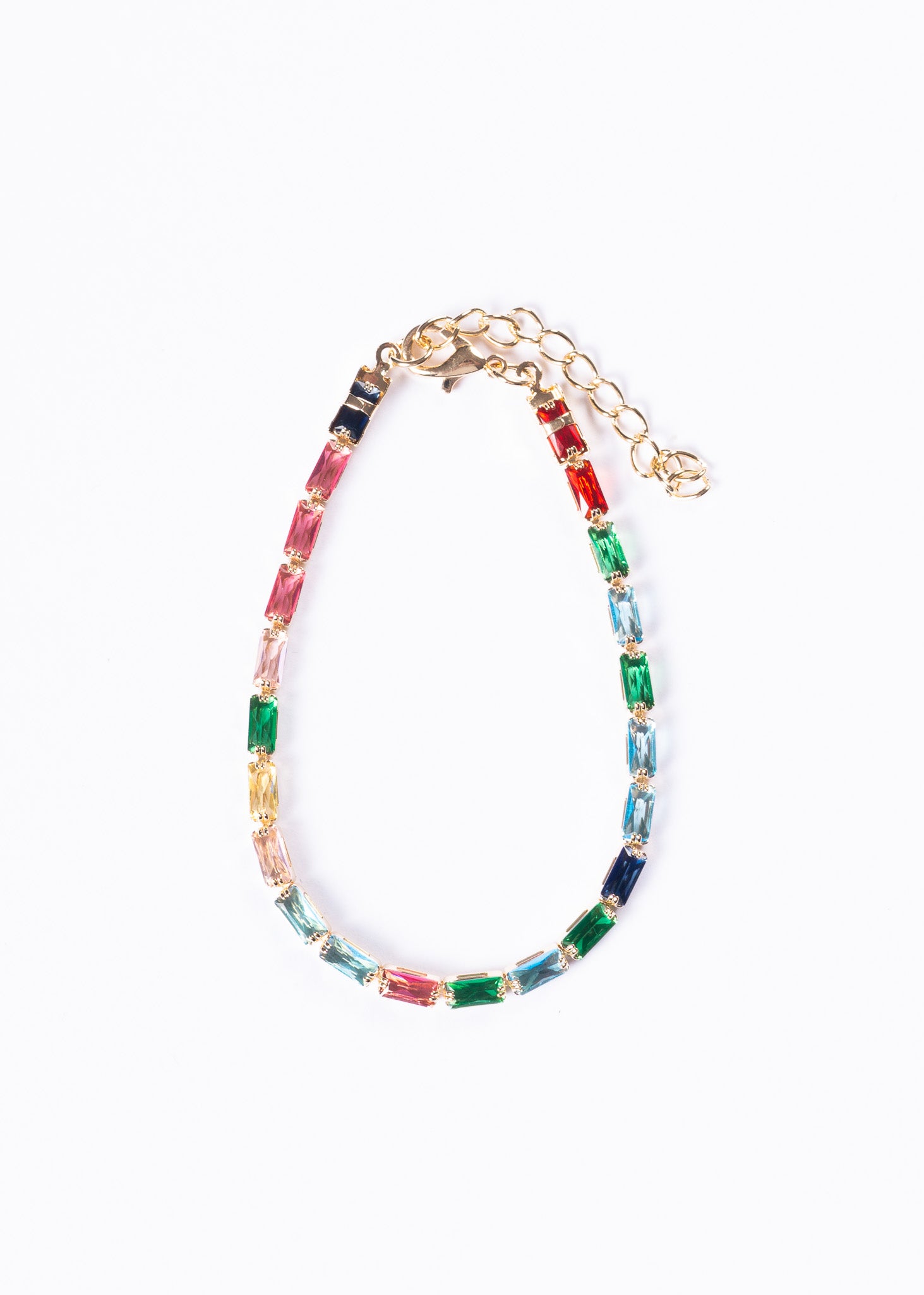 Pulsera tennis recta zirconias multicolor - Enchapado en oro