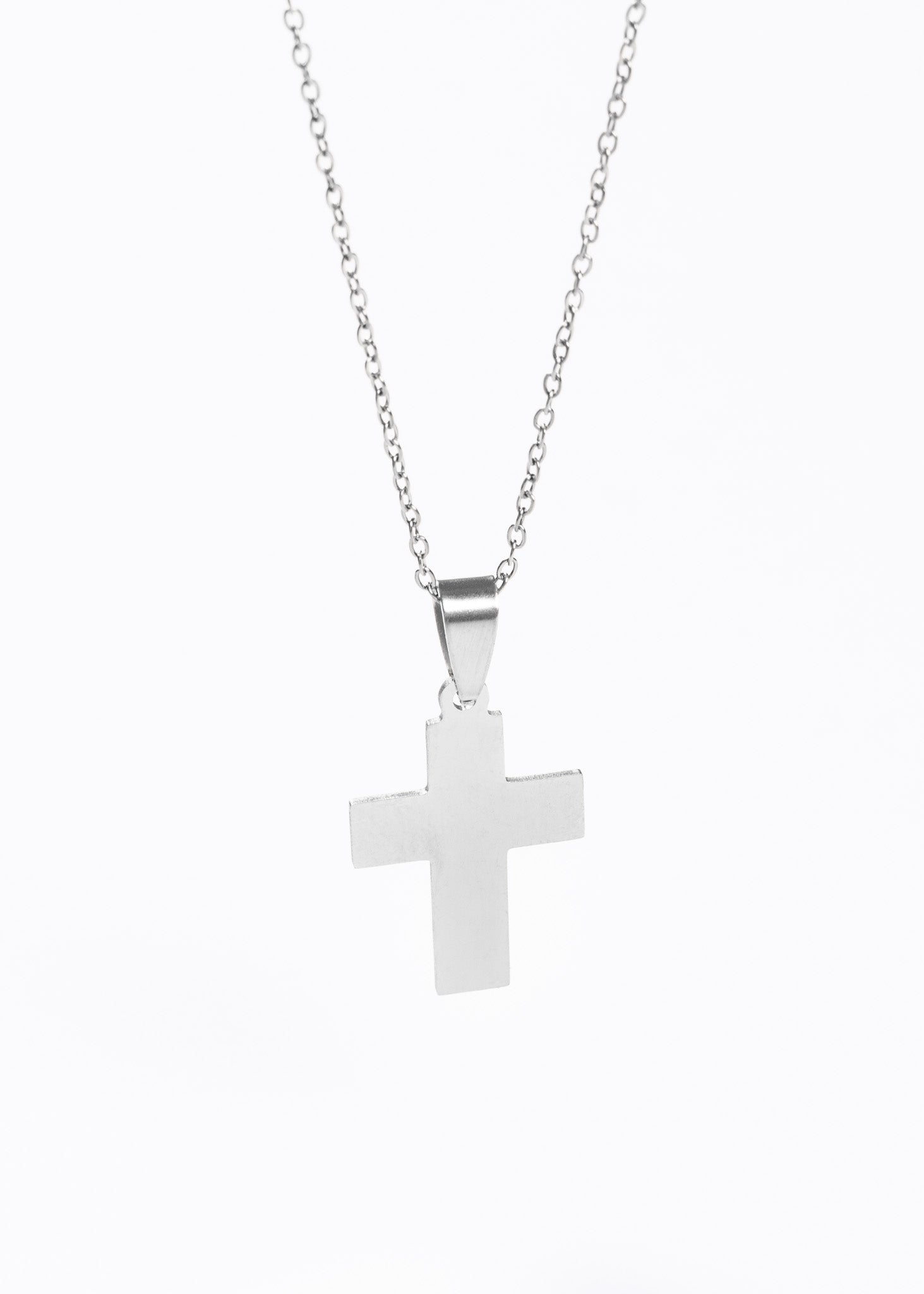 Conjunto cadena 45cm y cruz acero quirúrgico - Plateado unisex