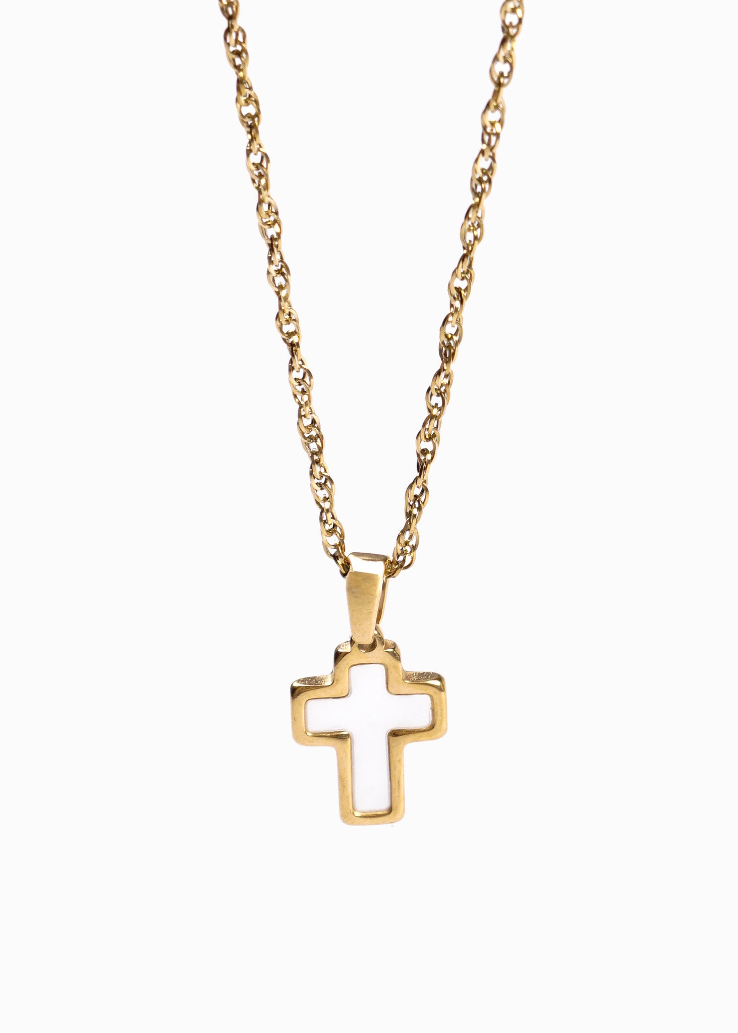 Conjunto cadena 45cm y cruz acero quirúrgico - Dorado unisex