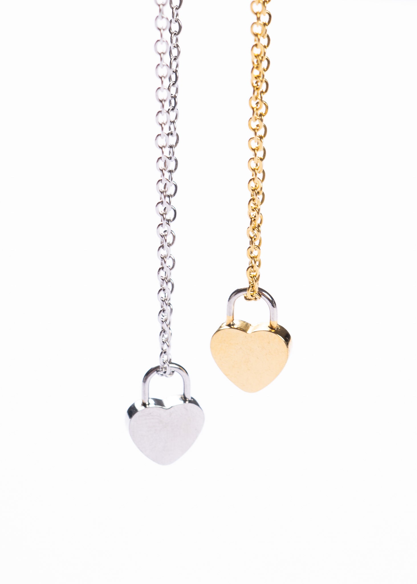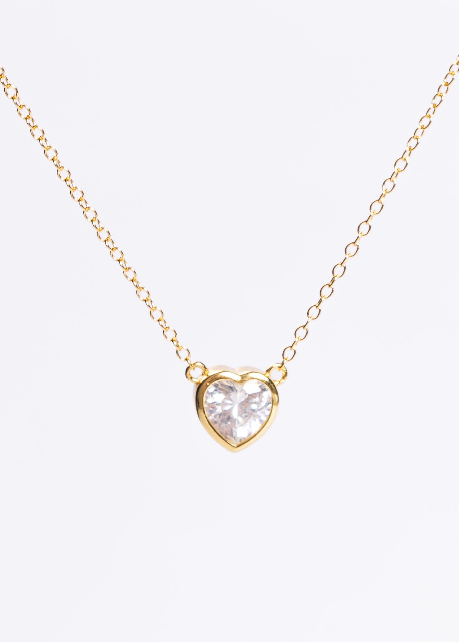 Cadena collar con dije punto luz corazón baño en oro 18k