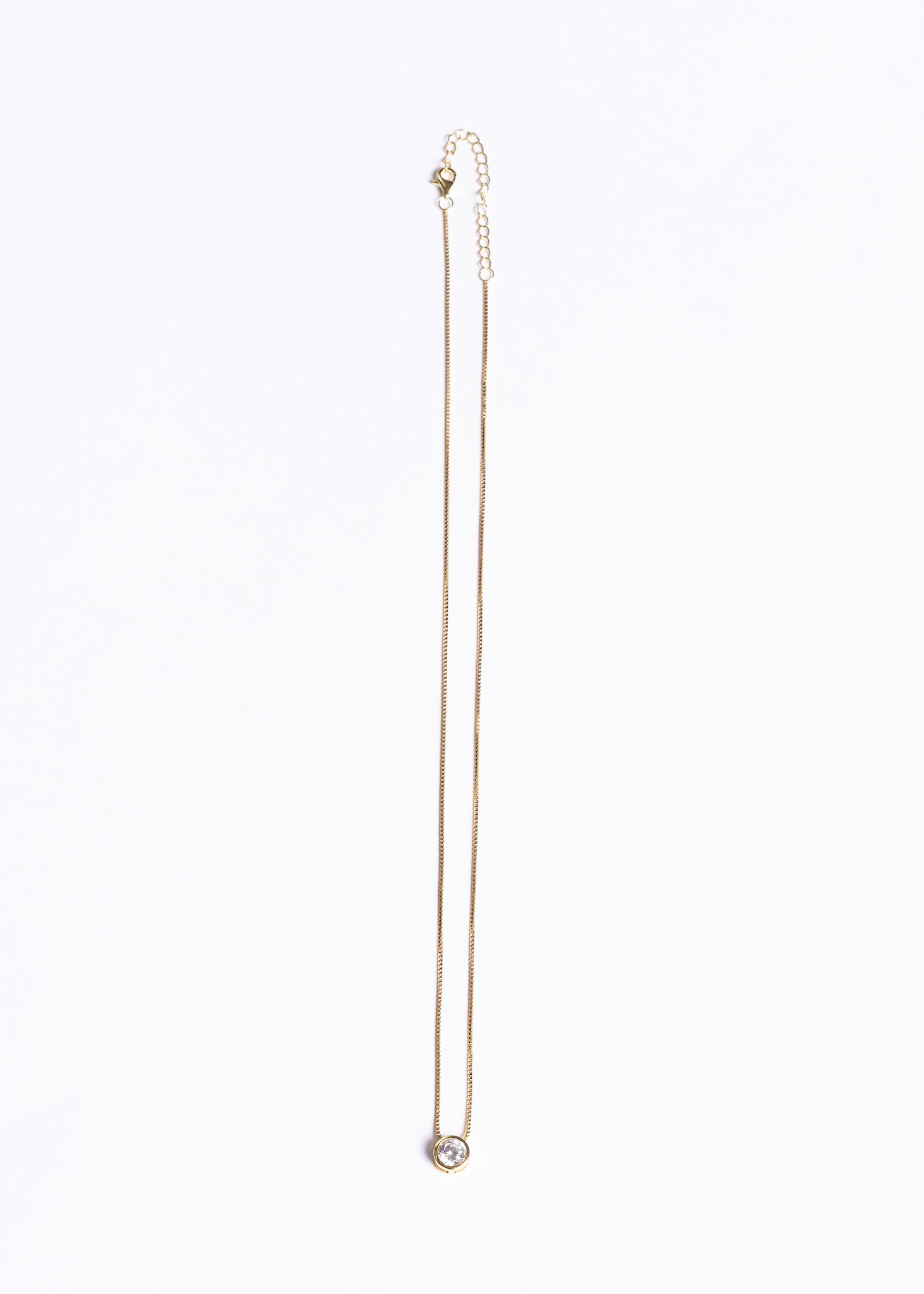 Cadena collar con dije punto luz zirconia baño en oro 18k