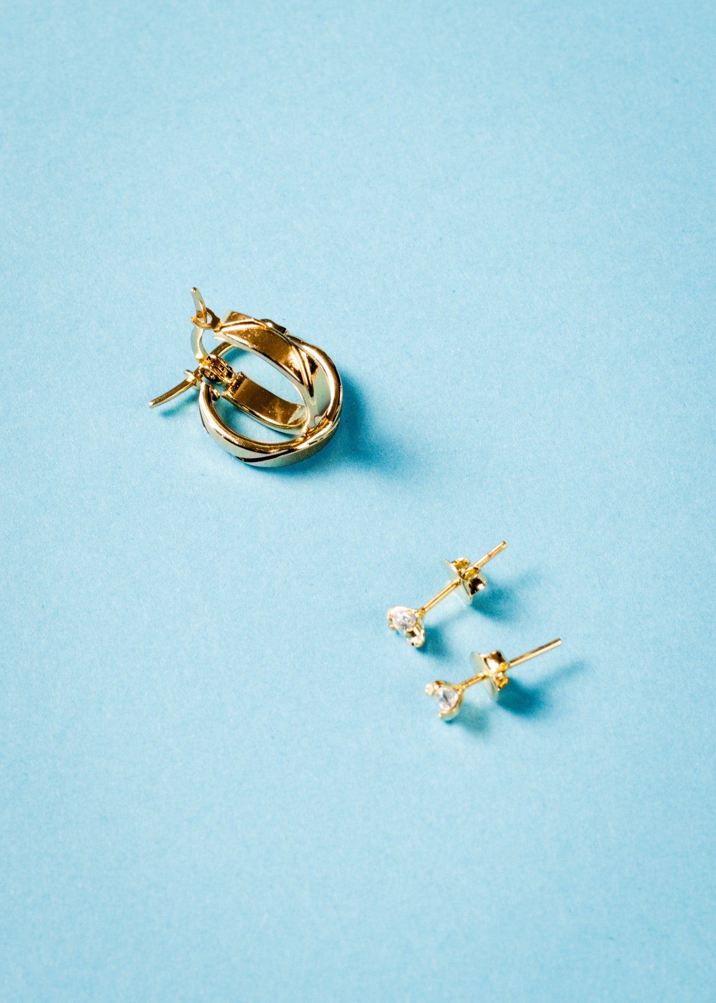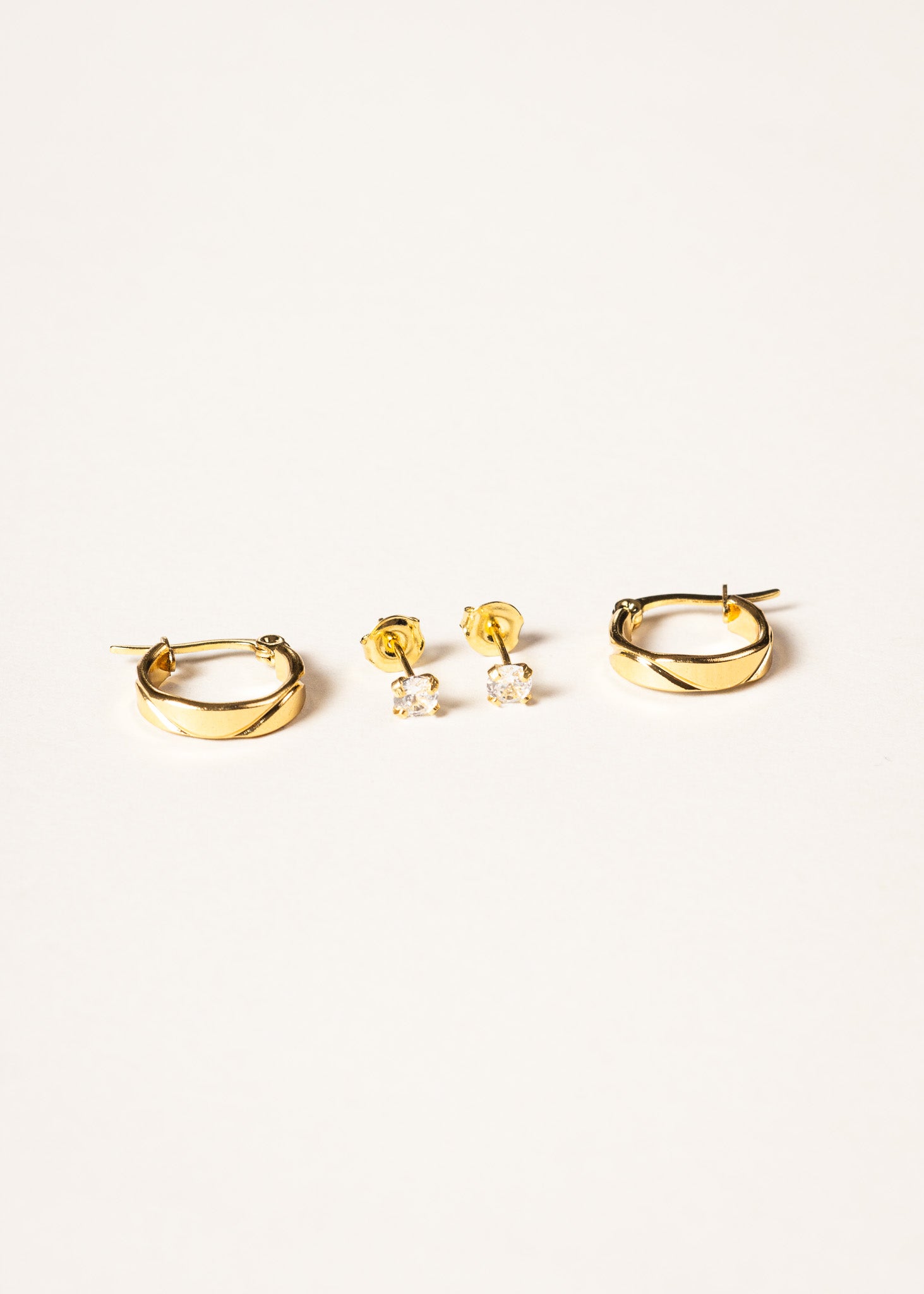 Set x2 par punto luz BDO18k y par aros labrados acero quirúrgico