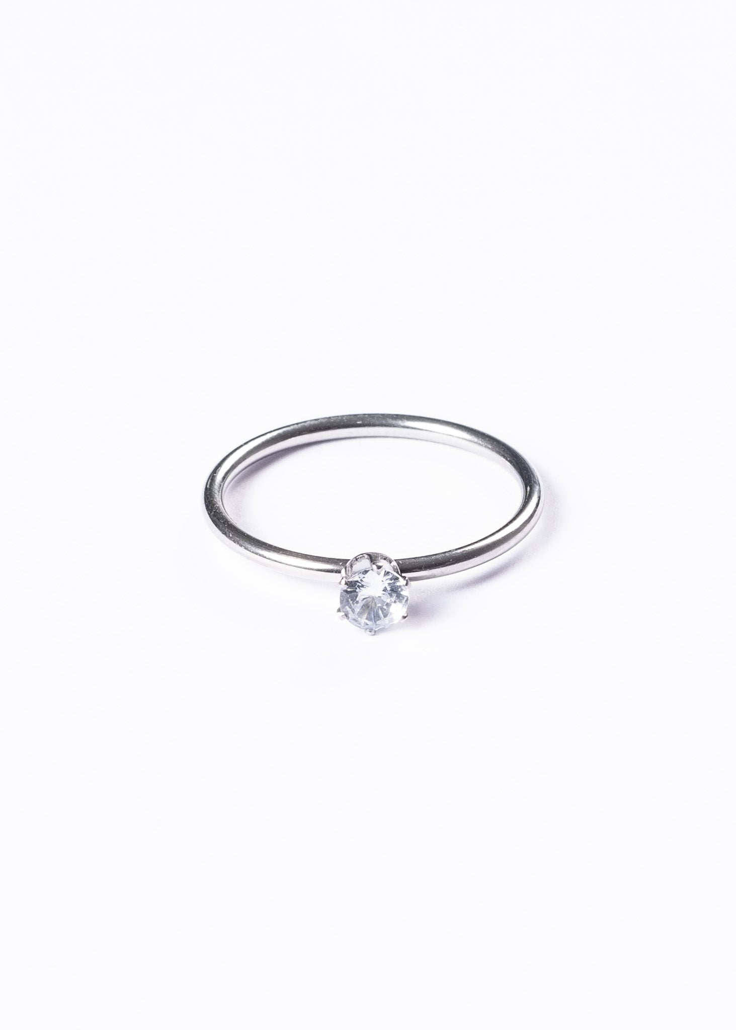 Anillo cintillo piedra 4mm acero quirúrgico plateado