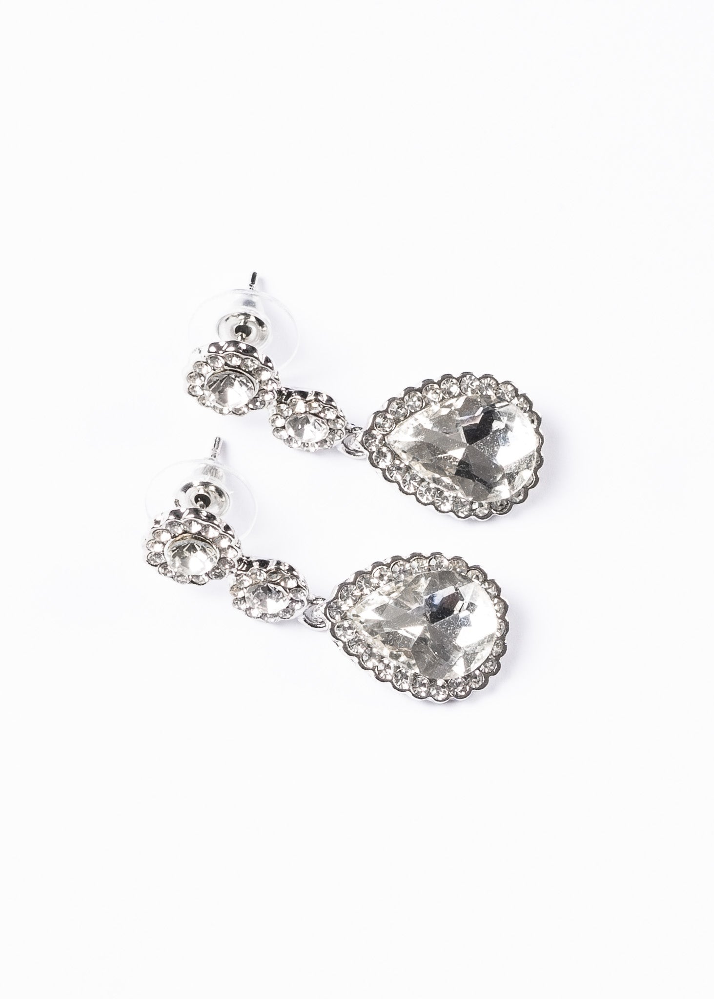 Caravanas gala fiesta tira larga strass - Enchapado en plata