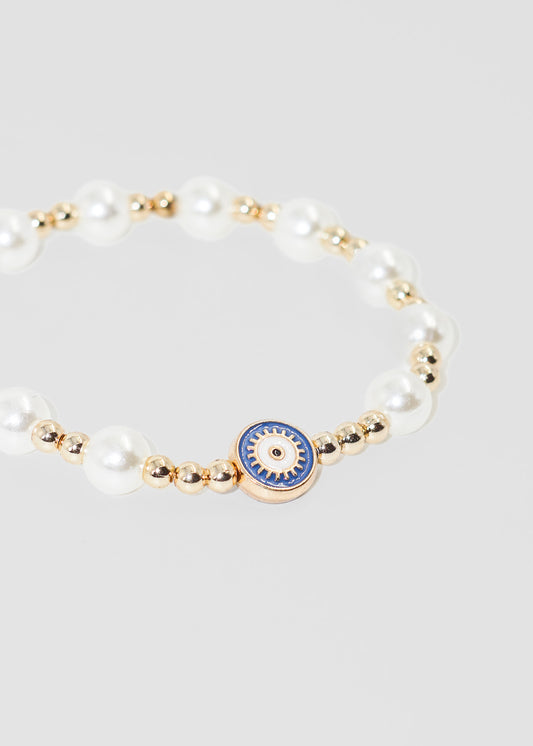 Pulsera perlas y ojo turco elastizada
