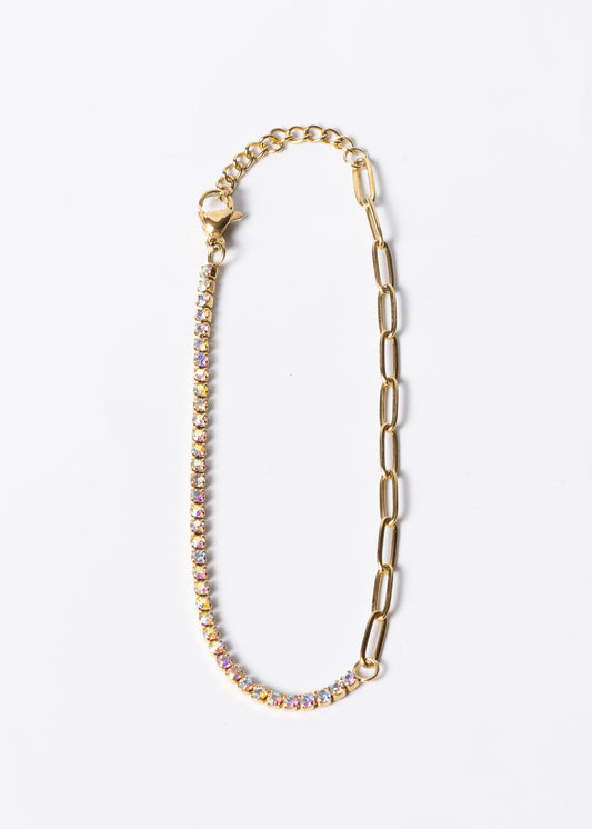 Pulsera tennis recta zirconias multicolor - Enchapado en oro