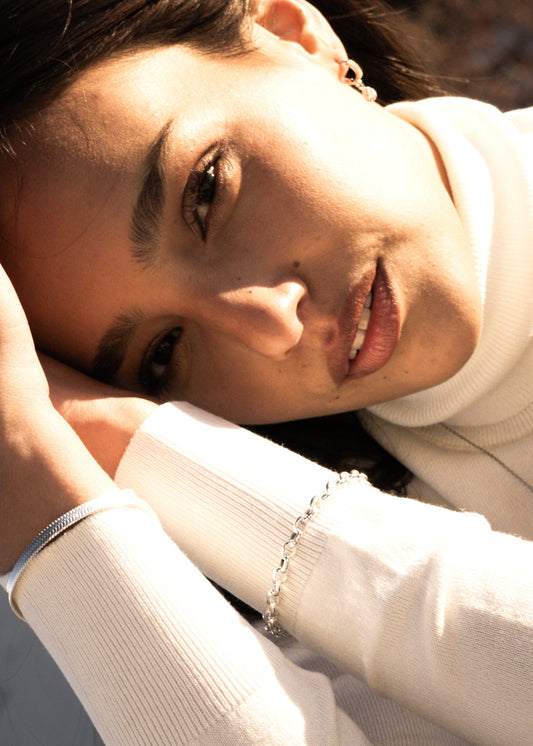 Pulsera serpiente chata acero quirúrgico blanco