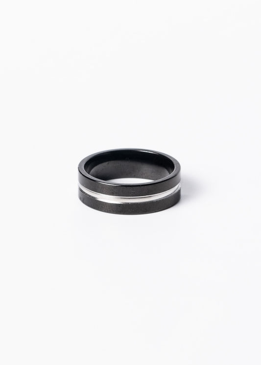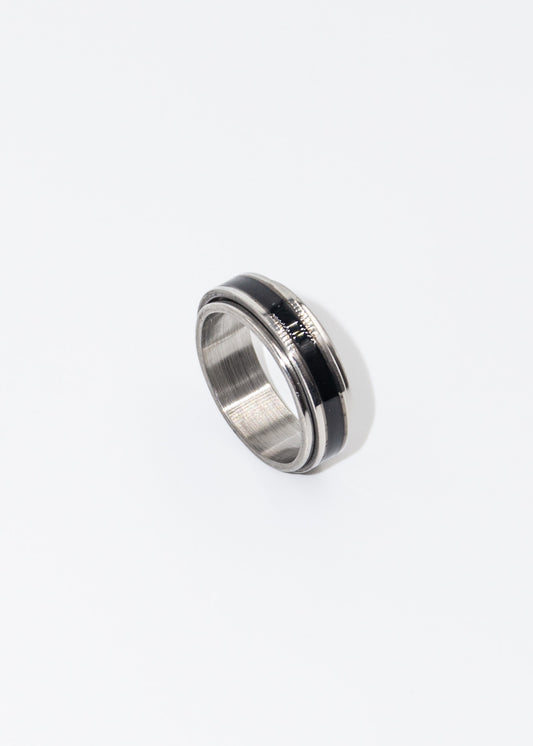• Anillo de mesa con piedra negra acero quirúrgico - Plateado