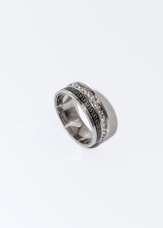 Anillo de mesa G griega con piedra negra acero quirúrgico
