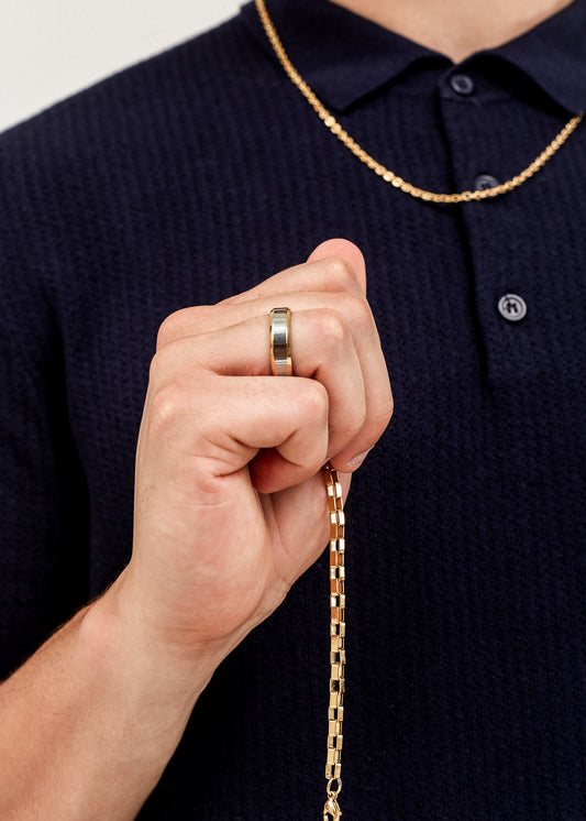 Anillo alianza bombé con facetado plata 925 y doublé de oro 10k