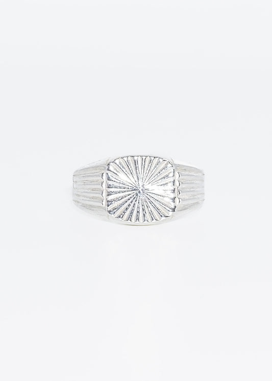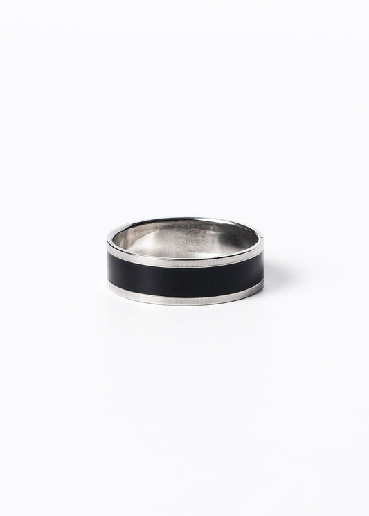 Anillo de mesa con piedra negra acero quirúrgico - Plateado