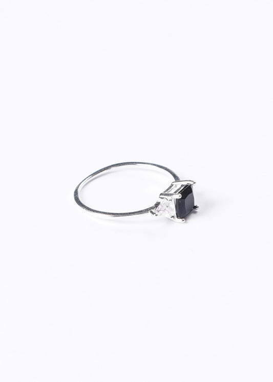 Anillo zirconia cuadrada negra plata 925