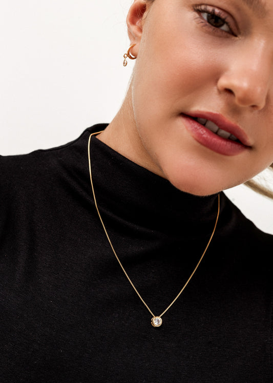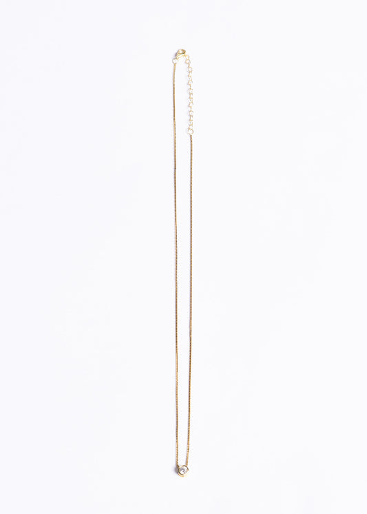 Cadena collar con dije punto luz zirconia baño en oro 18k