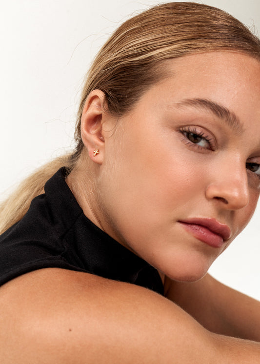 Caravanas aros punto luz plata 925 bañada en oro 18k
