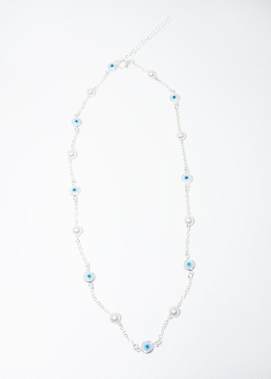 Collar cadena perlas y ojos turcos
