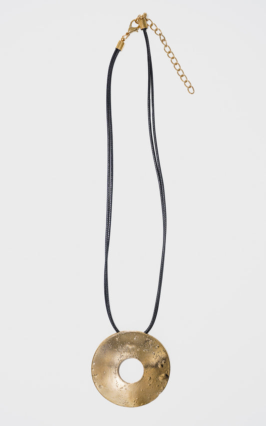 Collar doble cuerina con dije redondo vintage