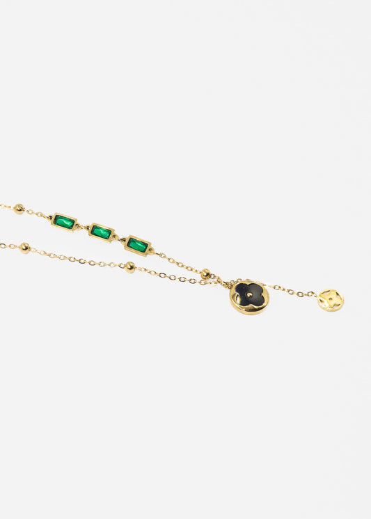 Cadena collar tréboles finos y cristales acero quirúrgico