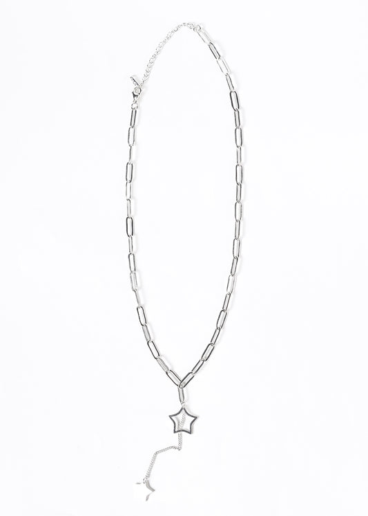 Collar eslabones y dijes estrellas acero quirúrgico blanco