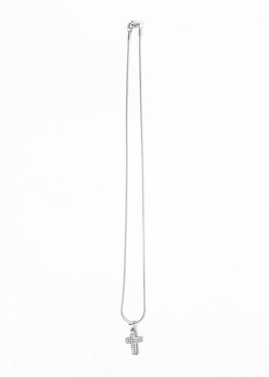 Cadena con dije cruz brillo strass acero quirúrgico