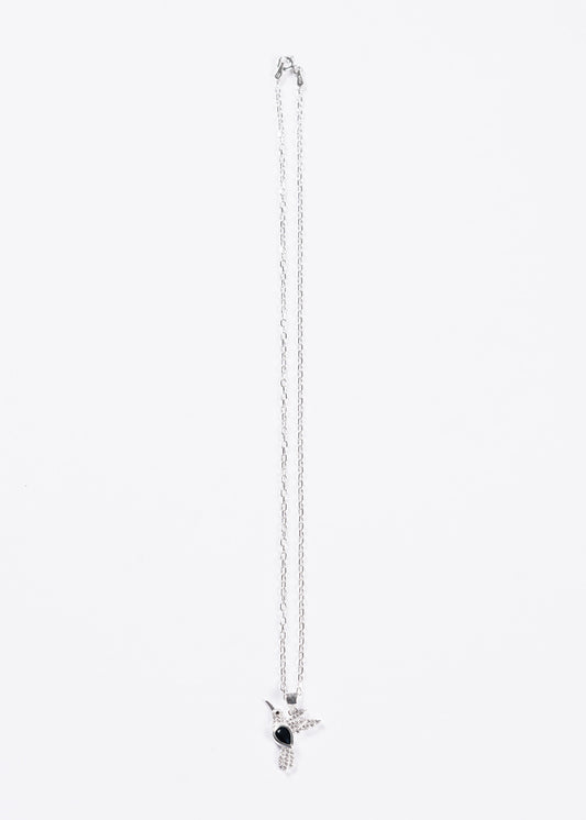 Cadena collar dije colibrí grande zirconia blanca plata 925