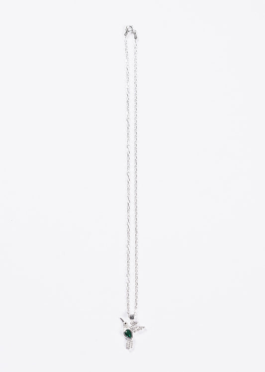 Cadena collar dije colibrí grande zirconia verde plata 925