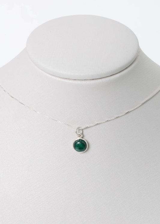 Cadena collar con dije malaquita redondo plata 925 - Protección