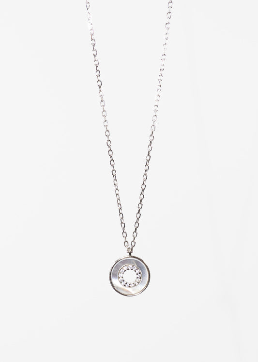 Cadena collar con dije redondo nácar y zirconias plata 925