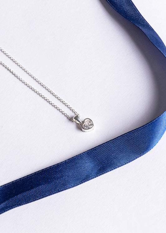 Cadena mini rolo con dije corazón zirconia blanca plata 925