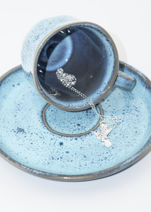 Collar cadena con dije colibrí zirconia blanca plata 925