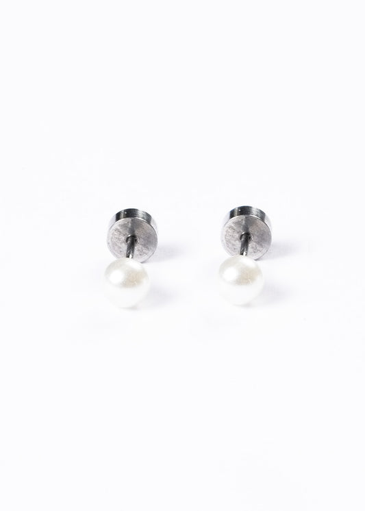 Caravanas perlas blancas acero quirúrgico - Plateado