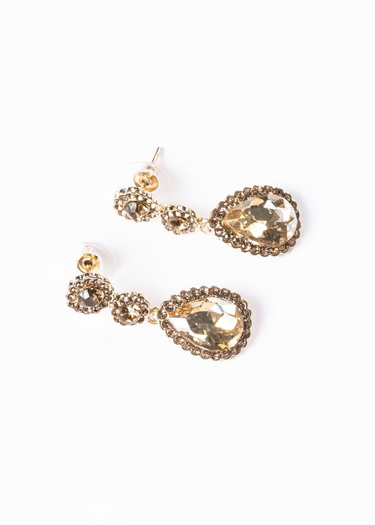 Caravanas gala fiesta tira larga strass - Enchapado en oro