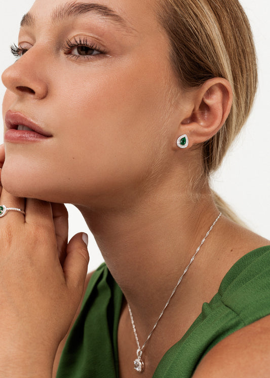Caravanas gota zirconia verde plata 925