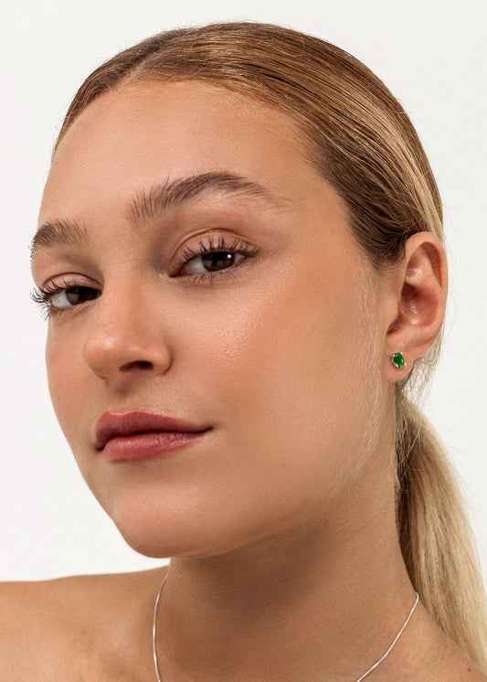 Caravanas oval zirconia verde plata 925