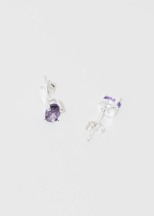 Caravanas oval zirconia violeta plata 925