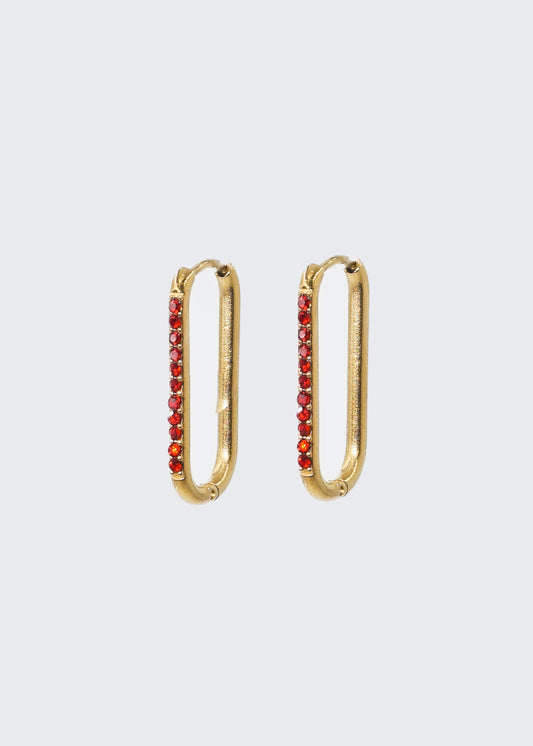 Caravanas aros bisagra zirconias rojas acero quirúrgico