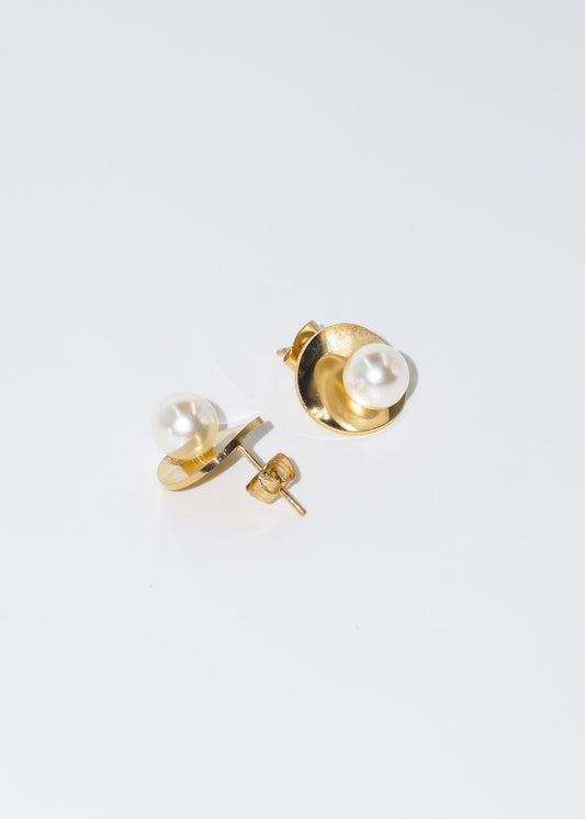 Caravanas placa y perla acero quirúrgico dorado