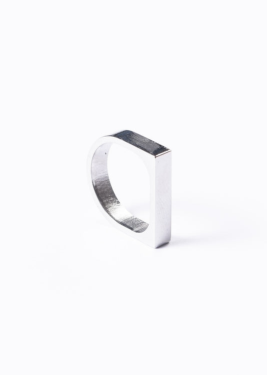 Anillo oval liso plateado acero quirúrgico + grabado