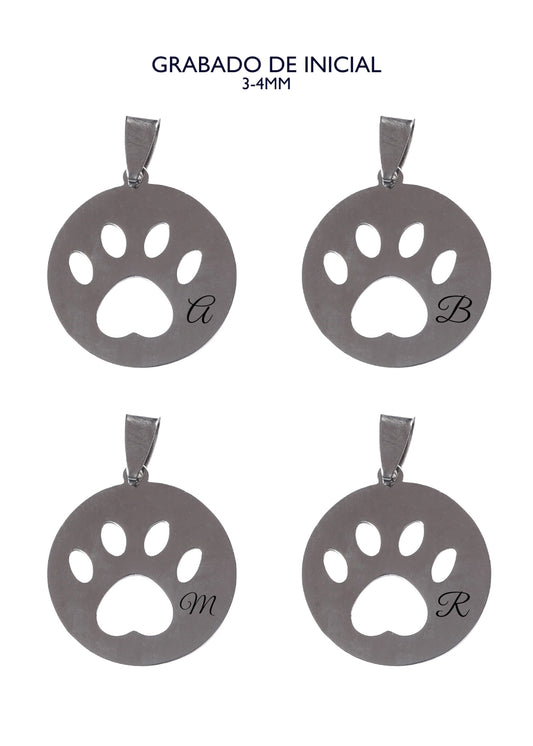 Dije huella de perro con inicial grabada - Acero quirúrgico