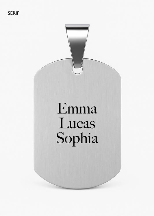 Dije placa lisa grande 3.6 x 2.3cm acero quirúrgico + Grabado